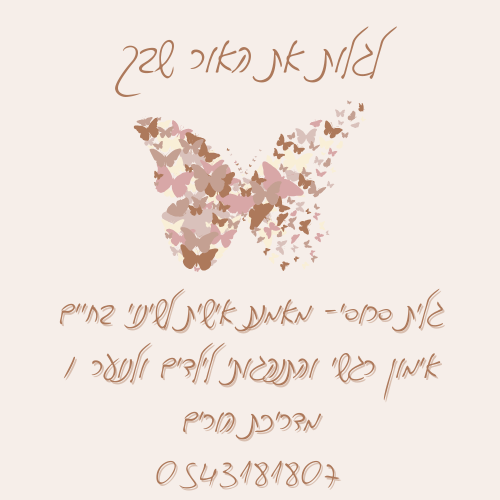 אני מאמינה שבכל אחד מאיתנו יש אור פנימי ייחודי, והייעוד שלי הוא לעזור לגלות אותו ולהאיר אותו. באמצעות כלים מעולם ה-CBT, אימון לחשיבה חיובית וחיזוק הביטחון העצמי, אני מלווה ילדים, נוער והורים במסע של גילוי עצמי והתמודדות עם אתגרי החיים (כגון: חרדות, פחדים, חוסר ביטחון עצמי ועוד…)